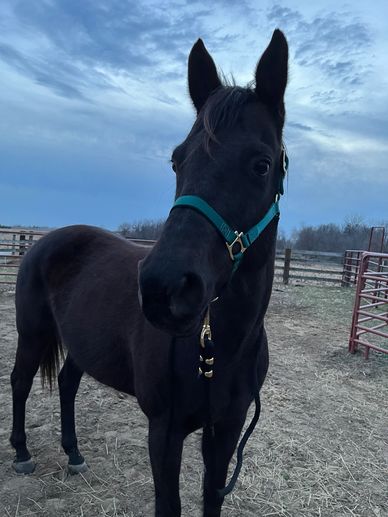 Dreamer is a pure black Quarter Horse mare who absolutely adores everybody! Her sweet demeanor makes her perfect for cuddles and attention, which is her favorite thing! She is usually the first to meet you at the fence for some loving! Although she is petite with her little head and feet, she sure is mighty!