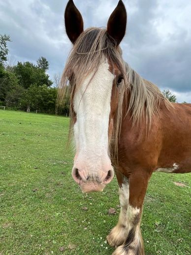 Matt the Clydesdale gelding is the biggest horse at the ranch and he is the definition of a gentle giant! Matt loves treats, grass, brushing, and petting! You have to not only be careful of his big feet, but his big nose loves sneaking kisses too! He is a very large horse, so if you give this big itchy man some scratches you will have a best friend for life!